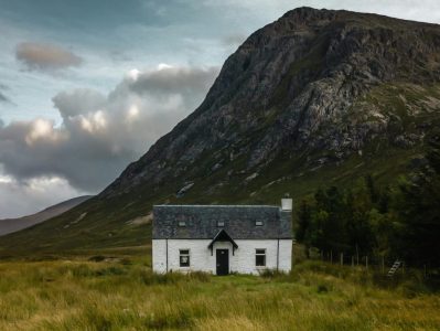Cottage branco no interior do Reino Unido, mostrando exclusividade e quão única a viagem pode ser