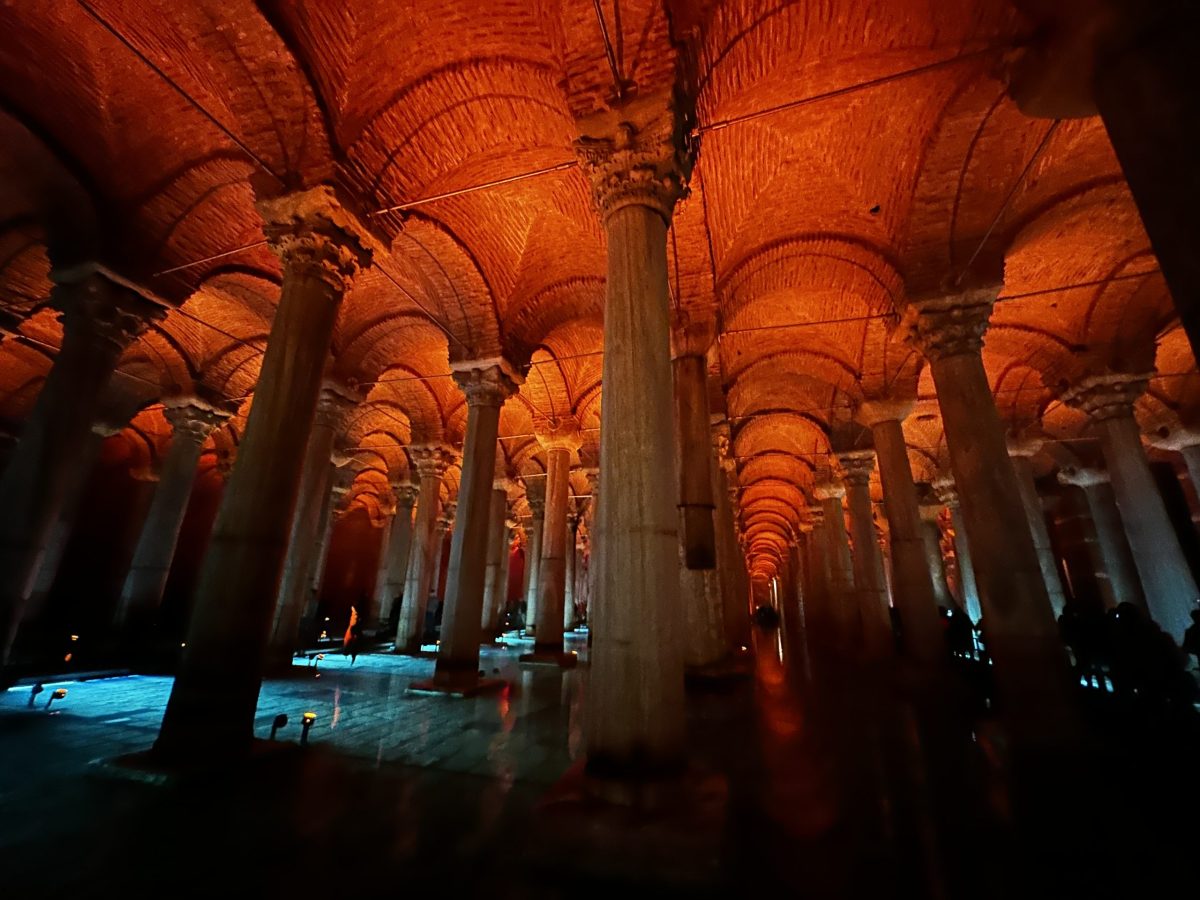 Cisterna subterrânea iluminada.